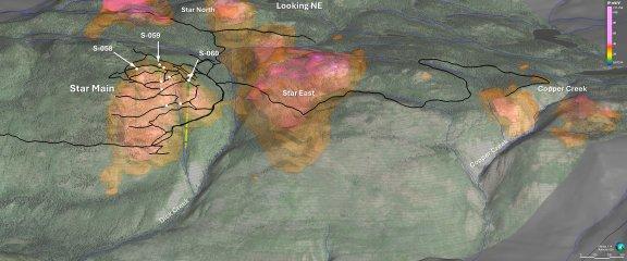 Darryl Jones, CEO des Unternehmens, äußerte sich begeistert: „Diejenigen, die unsere aktuellen Nachrichten verfolgen, wissen, dass diese drei Bohrlöcher das System Star Main in mehrfacher Hinsicht voranbringen. Wir haben die Mineralisierung auf neue Bereiche erweitert, die Verbindung zwischen der kaliumhaltigen Alteration und dem Chalkopyrit in der Tiefe verstärkt und Korridore mit einer signifikanten Erzgangdichte erschlossen, wo dies am wichtigsten ist. Aufgrund der noch ausstehenden Untersuchungsergebnisse und der Fortschritte in den Zielgebieten Star Main, North, East und Copper Creek sehen wir den Ergebnissen unserer diesjährigen Explorationskampagnen mit großer Spannung entgegen. Die Bohrlöcher wurden innerhalb des Zielgebiets Star Main angelegt, um die Mineralisierung nördlich und westlich der jüngsten Bohrlochansätze zu erweitern und das geologische Gefüge zu verdichten, das die oberflächennahe Kupferoxidmineralisierung mit der hypogenen, in Gängen und verstreutem Chalkopyrit gelagerten Mineralisierung in durch Kalium alterierten Intrusionen und den damit vergesellschafteten Gangnetzen verbindet (siehe Abbildung 2).