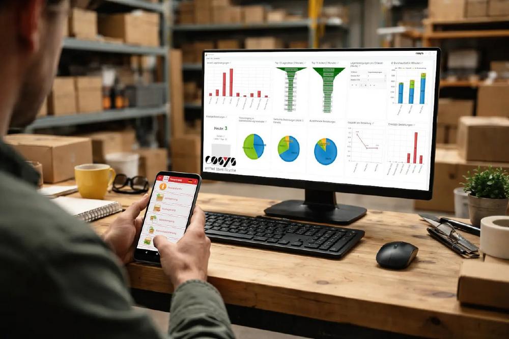 COSYS positioniert seine Lagerverwaltung als konsequent digitale Lösung: Buchungen erfolgen mobil per App, während der COSYS WebDesk als webbasierte Schaltzentrale für Analysen, Auswertungen und Steuerung dient. Import-/Export, Schnittstellen und zentrale Datenhaltung sind besonders wichtig, damit Warenwirtschaftssystem Lagerverwaltung nicht als Insellösung endet.