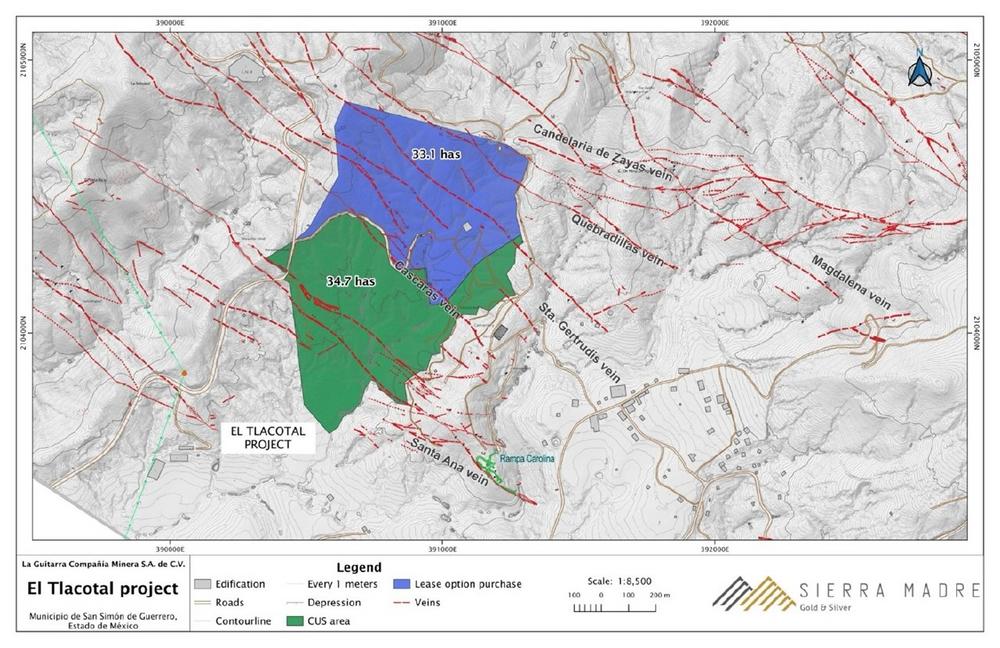 Angrenzend an die bestehenden Betriebe hat Sierra Madre eine Kaufoption für Privatgrundstücke südwestlich der derzeitigen Abraumhalde (TFS) sowie für die Privatgrundstücke unterhalb der derzeitigen TFS – der Lopez-Erweiterung – abgeschlossen.