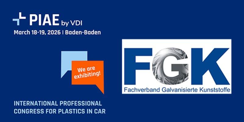 Der Fachverband Galvanisierte Kunststoffe e.V. (FGK) nimmt am 18./19. März 2026 als Aussteller am Internationalen Fachkongress zu Kunststoffen im Automobilbau des VDI in Baden-Baden teil.