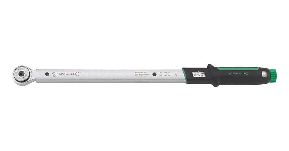 Eine gut ablesbare Skala (Nˑm / lbˑft) mit zusätzlicher Feinskala ermöglicht die schnelle und präzise Einstellung des vorgegebenen Drehmoments. Dieses lässt sich einfach über einen Drehknopf am Griffende einstellen. Beim 750NR/200 geht das mit 10 Nˑm pro Umdrehung besonders schnell und spart wertvolle Zeit, wenn das Drehmoment für unterschiedliche Schraubfälle geändert werden muss.