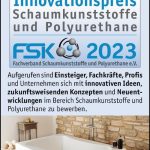 Der Fachverband Schaumkunststoffe und Polyurethane e.V. (FSK) verlängert die Frist für die Bewerbung zum Innovationspreis bis zum 27.06.2024. „Es soll wieder ein spannender Wettbewerb werden. Dahingehend sind wir eben aus den vergangenen Jahren verwöhnt“, erklärt FSKGeschäftsführer Klaus Junginger die Fristverlängerung. Weiterlesen