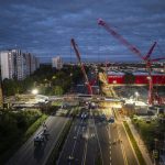 Längste integrale Holzbrücke der Welt in Mannheim eingehoben